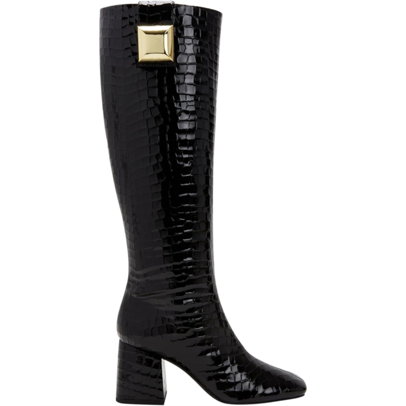 Take each stride with confidence! The Katy Perry The Geminni Boots come with a square-toe design for a sleek look. Adorned with a square-shaped metal hardware ornament, this knee-high pair makes for an absolute everyday favorite.
