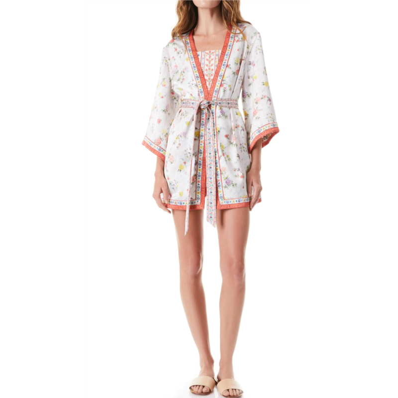 Both length (size M/L). Open front. Three-quarter sleeves. 100% polyester. Dry clean. Imported. Color - Multi