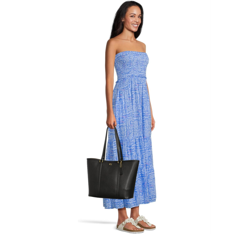 *Classy and elegant, the COACH Legacy Tote boasts a premium leather construction and comes with a polyester-lined interior which is spacious enough to hold your everyday essentials. It is secured with a snap closure that offers easy access to your stuff and possesses dual top handles for ease of carrying.