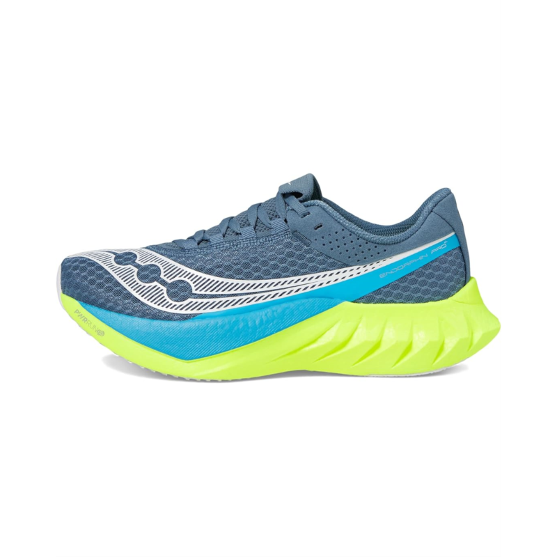 - Reach your destination without feeling tired wearing Saucony Endorphin Pro 4 sneakers. It has textile/synthetic upper, textile lining, and PWRRUN PB removable footbed. A lace-up closure, round bump toe, and padded collar provide right support on stress points. A colorful signature pattern give stunning look to the sneakers.