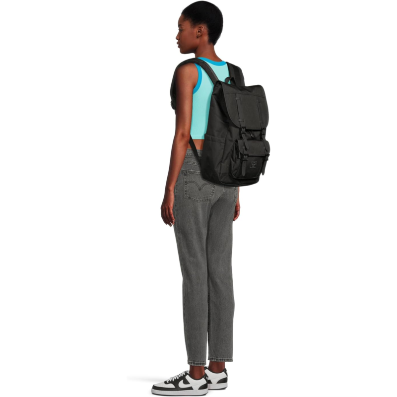 - Pack your bag and get ready to hit the road carrying the Herschel Supply Co. Little America Mid Backpack. It boasts EcoSystem 600D Fabric made from 100% recycled post-consumer water bottles. It has padded and adjustable shoulder straps, and interior and exterior pockets, and buckle closure.