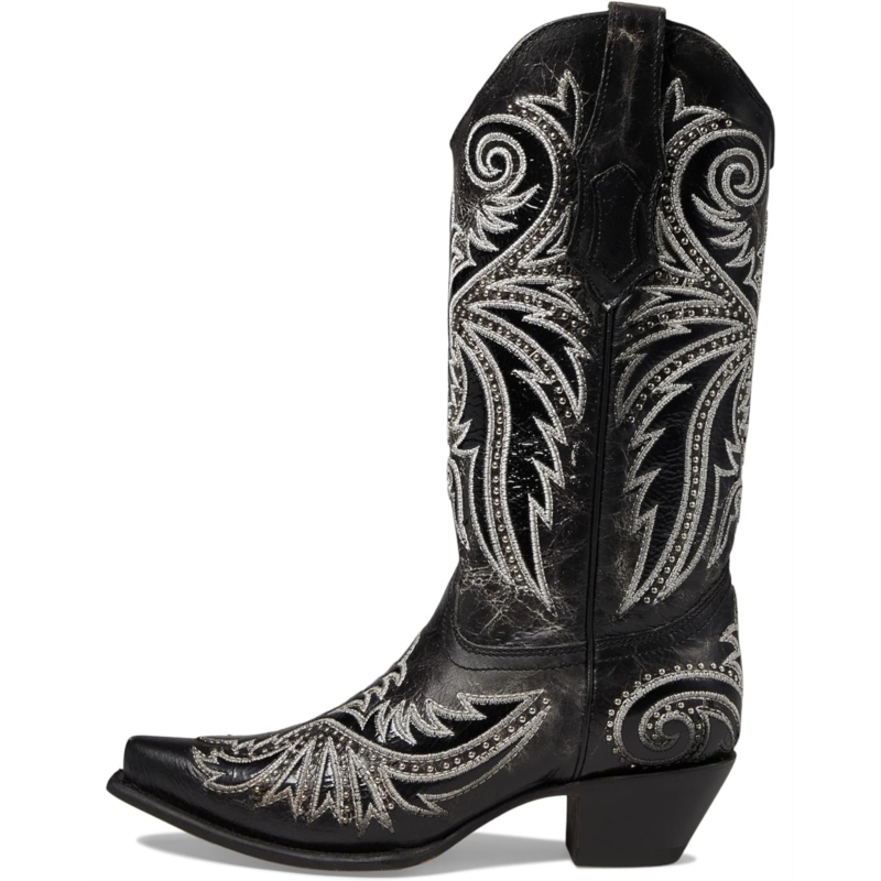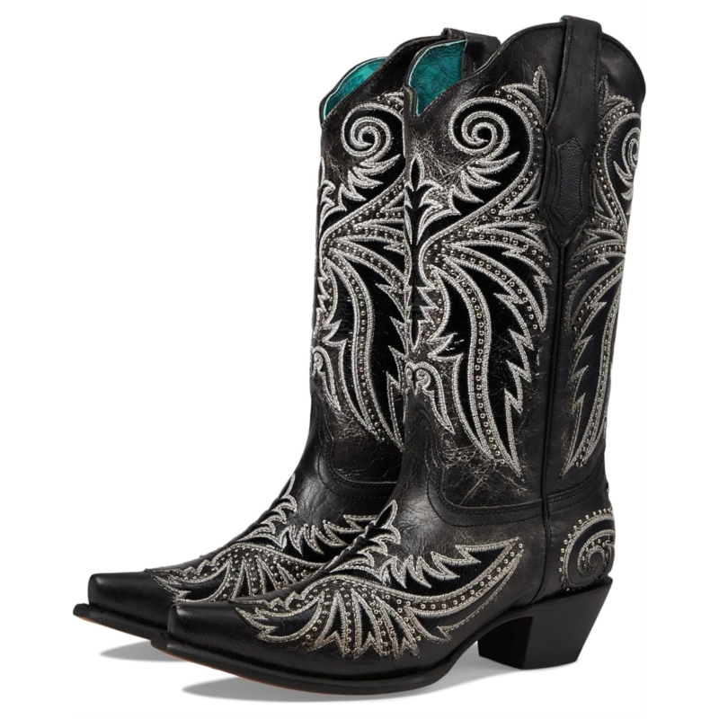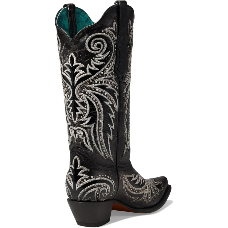 - Leave an impact with your dashing presence wearing the Corral Boots Z5209 that features embroidered and studded ornaments. The calf-high footwear has leather upper, lining and insole construction with side pull tabs fostering an easy pull-on style.