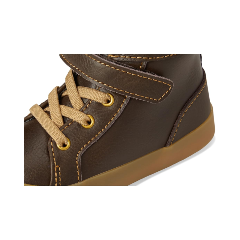 - Hook-and-loop strap and faux elastic laces allow for secure fit and custom adjustability while classic SKR fit gives feet room to move and grow.