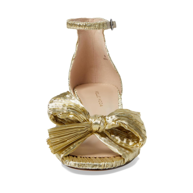 - Showcase your fashionable stance wearing the Pelle Moda Utika Sandals. With a charming bow accentuation, the footwear features pleated fabric upper with back heel counter and adjustable buckle on ankle strap for a comfortable fit.