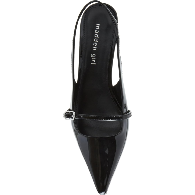 - The classic kitten heel slingback gets a sophisticated update with the Madden Girl Krystall point toe pump. A slender Mary Jane strap across the top gives this Madden Girl design its delicate silhouette and provides extra support for your step. These bicycle toe designed low top pumps have aluminum toe support. Crafted with polyurethane (PU) upper, comfortable synthetic rubber lining and insole, and thermoplastic polyurethane outsole.