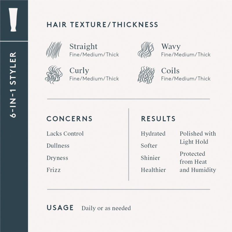 What it is: A universal styling cream that primes hair to add softness, shine, and light hydration while strengthening, polishing, and protecting from heat.