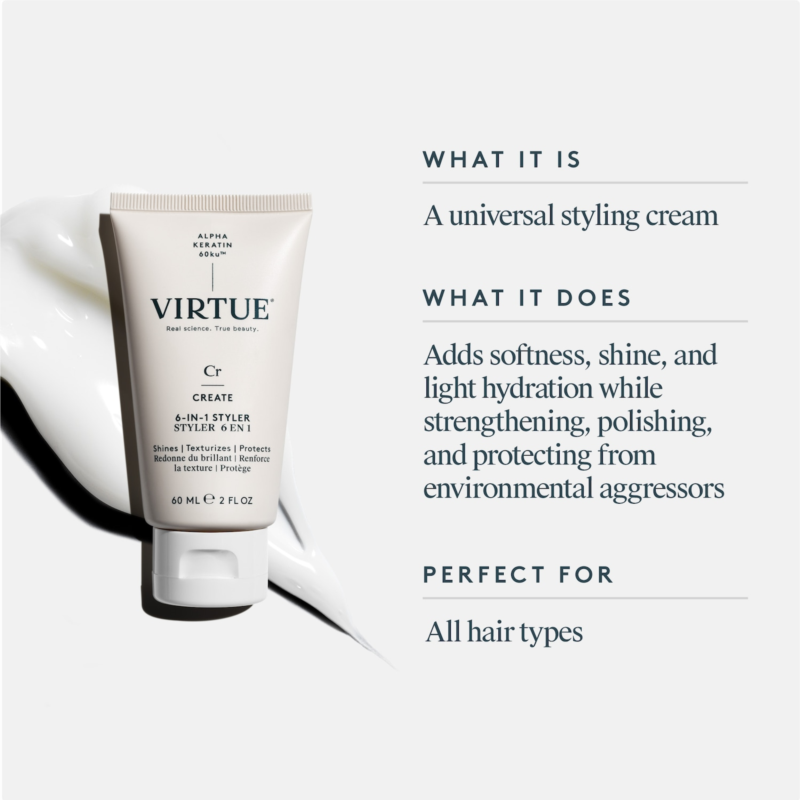 What Else You Need to Know: Powered by Virtue’s revolutionary Alpha Keratin 60ku protein, this is the ultimate multitasking product?a frizz fighter, bounce builder, style setter, and shine booster all in one. This lightweight formula blends seamlessly into hair without a trace and works for every hair type.