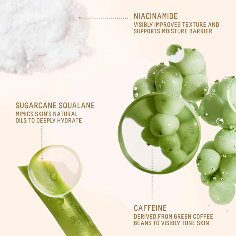 - Caffeine from Green Coffee Beans: Visibly firms skin.