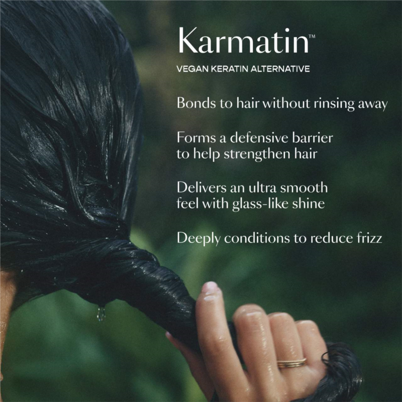 - Karmatin: A vegan silk bonder and silicone alternative that repairs damage and fights frizz without rinsing away.