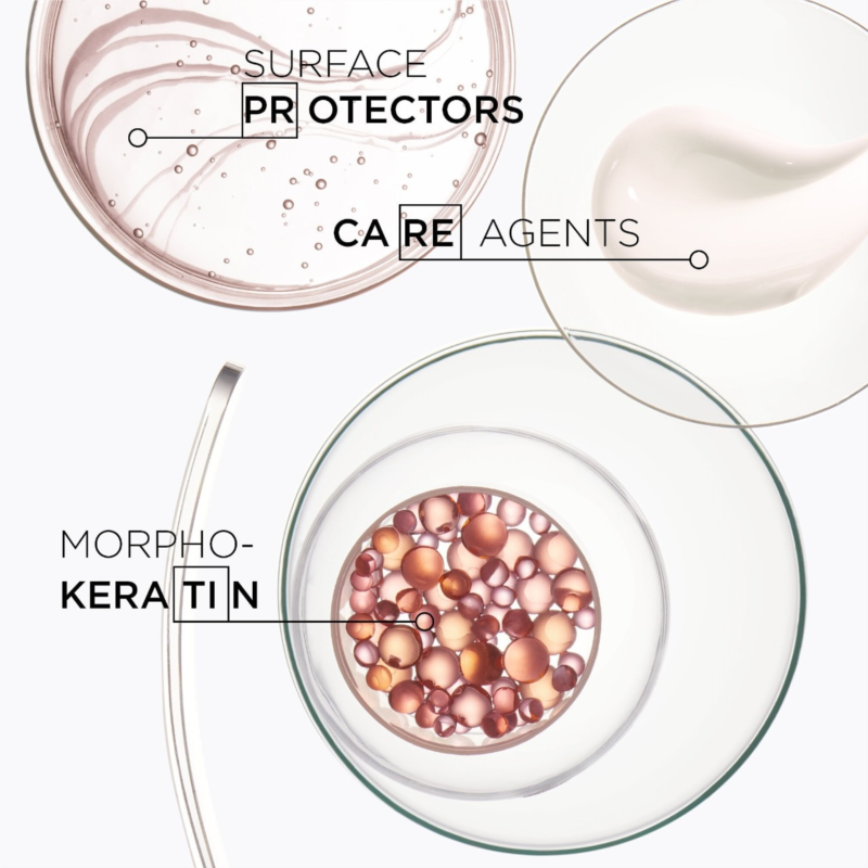 - Morpho-Keratine Complex: Restores hair fibers to protect against frizz and improve manageability.