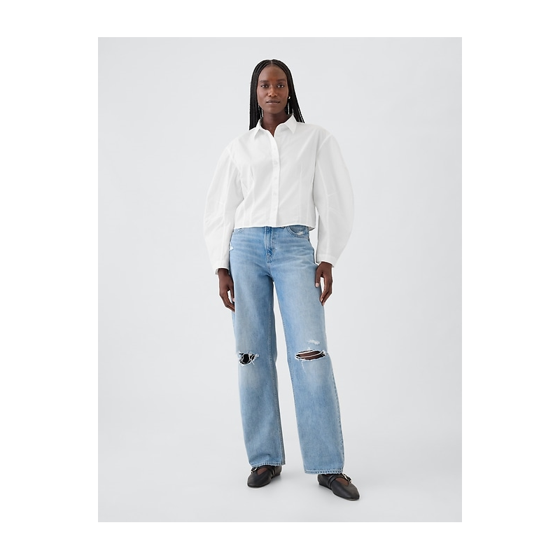 [US] Gap Organic Cotton Poplin Barrel-Sleeve Crop Shirt