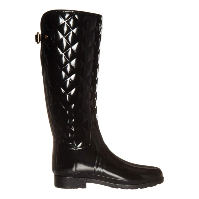 - Whatever the occasion calls for, dress up your look in the wintry weather with these Hunter Refined Gloss Quilt Tall Rain Boots.