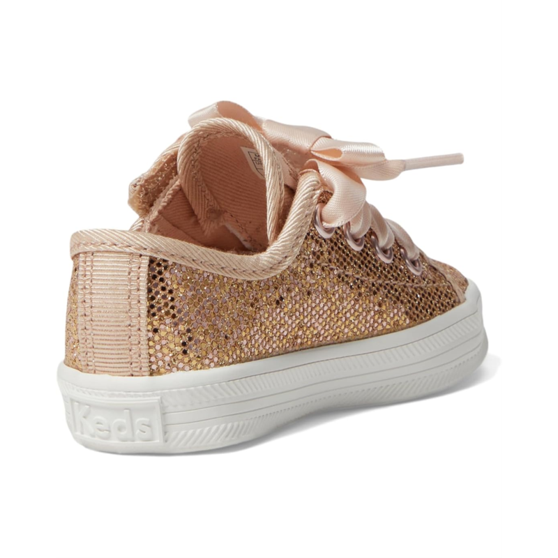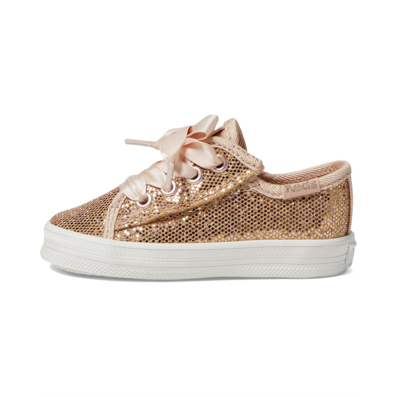- Glam up your ensemble instantly by styling the Keds Kids Kickstart Jr. Celebrations. Featuring a dazzling glitter PU upper, these shoes are designed to shine. The satin lace-up closure adds a touch of elegance, while the round toe ensures comfort. With a polyester lining for breathability and a rubber insole and outsole for durability, these shoes are as practical as they are stylish.