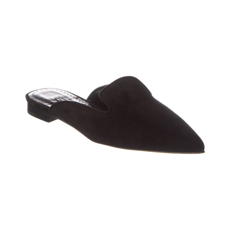 Introducing the Manolo Blahnik Wilfa Suede Mule, a luxurious and sophisticated addition to your shoe collection. Made in Italy with the finest materials, these mules feature a sleek black suede design with a chic pointy-toe silhouette. The lightly padded leather insole ensures comfort with each step, while the smooth leather sole provides durability. As a brand known for its beautifully feminine, elegant, and iconic designs, Manolo Blahnik does not disappoint with these stunning mules. Please note that size selections are European, so be sure to reference the size chart for US conversions. Based on feedback, this brand typically runs small, so we recommend sizing up a half size for most styles. Rest assured that our products are 100% genuine, sourced from trusted independent suppliers to guarantee authenticity. Elevate your look with the Manolo Blahnik Wilfa Suede Mule and step out in style.