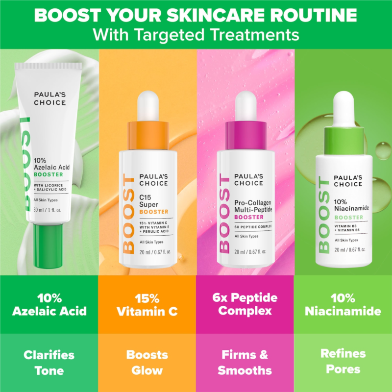 - Azelaic Acid 10%: Visibly clarifies uneven skin tone, brightens dark spots, and fades post-acne marks.
