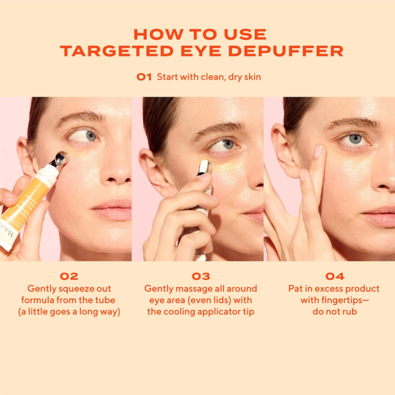 What Else You Need to Know: Featuring a microcurrent-inspired peptide, Targeted Eye Depuffer delivers a firmer, tighter look with every use. Ginseng, lily, and caffeine visibly reduce the intensity of under-eye bags, while a cooling metal applicator massages away puffiness for a more awakened look.