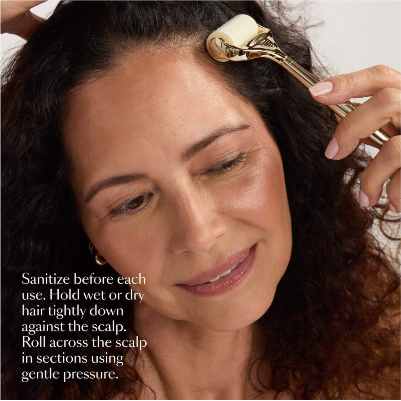 What it is:?A dermatologist-codeveloped Dermaroller that gently exfoliates the scalp.