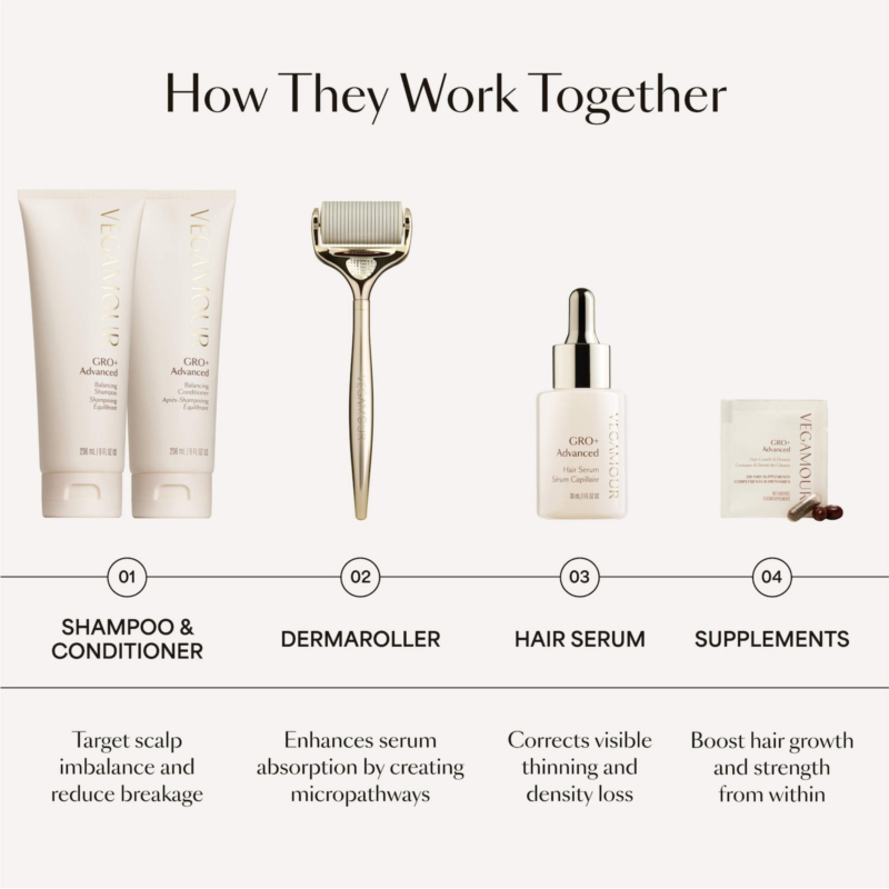 What Else You Need to Know: This luxe Dermaroller gently exfoliates the scalp to prepare for Vegamour’s GRO+ Advanced Hair Serum (sold separately). The scalp tool, codeveloped by dermatologists, features a wide head specifically designed for maximum scalp coverage. The easy twist-on, twist-off design works in tandem with monthly Replacement Heads, and it comes complete with its own protective carry case. For best results, replace the Dermaroller head every 30 days.