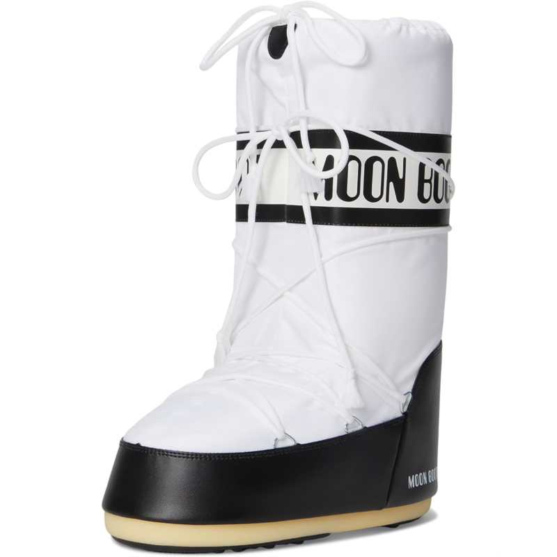 - Iconic design, unmatched warmth in the MOON BOOT Icon Nylon! Elevate your snow style with a durable nylon upper and knee-high design that conquers the cold. Experience the perfect blend of comfort and support with a PU insole and grippy rubber outsole, keeping you steady on icy terrain. The round toe and lace-up closure provide a snug fit, making these snow boots as functional as they are fashionable.