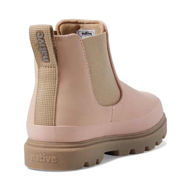 - Let your kiddo look stylish and modern wearing the pull-on style Native Shoes Kids Kensington Chelsea. Crafted from PU upper and insole, this pair of unlined boots features round toe, flat heel, elasticized gore detailing, and back pull tab for easy on/off.