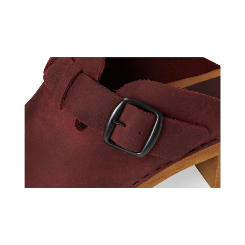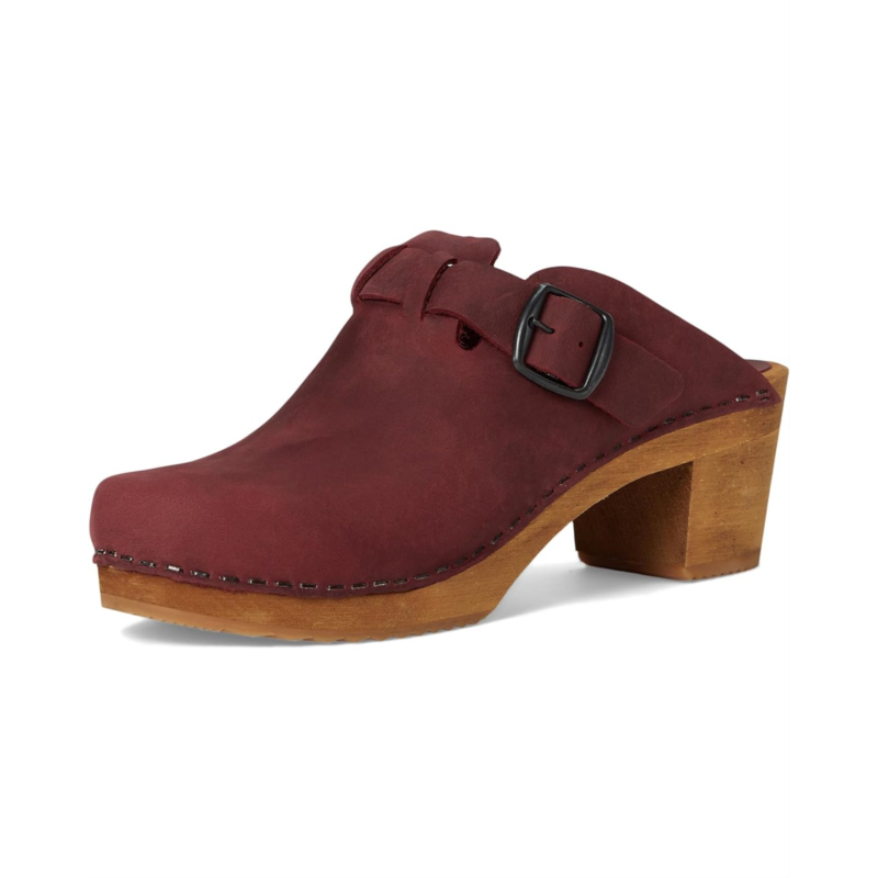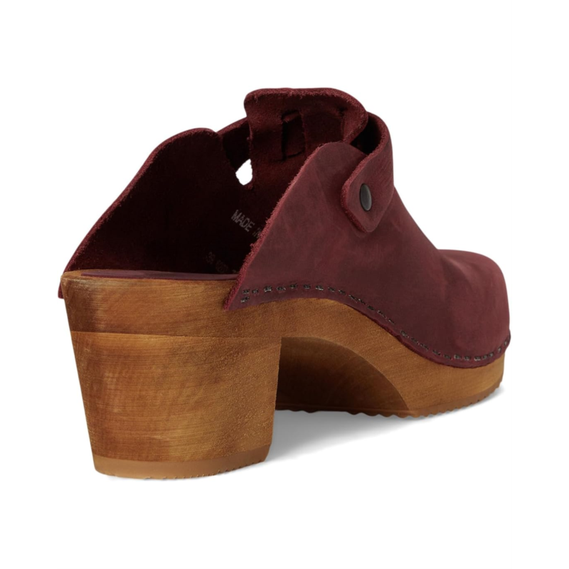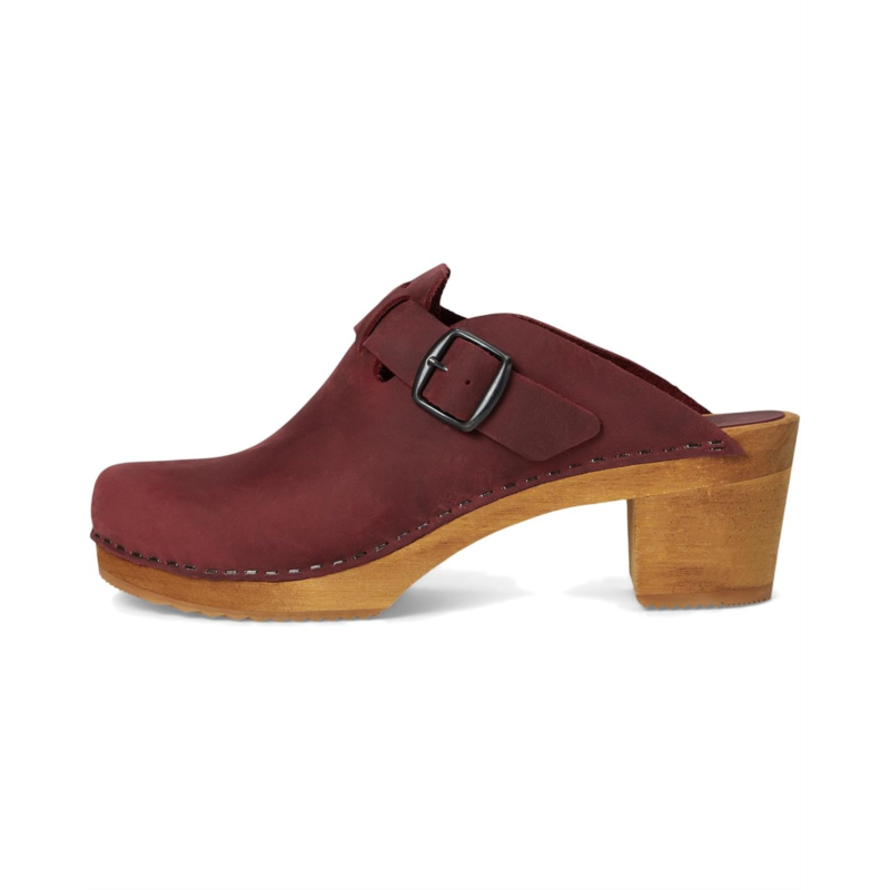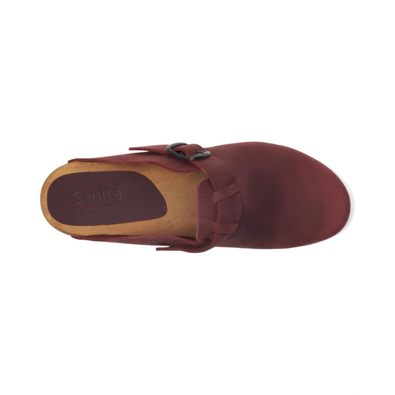 - The Sanita Malulo is an open-back clog with a high block heel and adjustable buckle strap on the vamp. Featuring a latex rubber outsole, the low-top footwear has an oiled leather upper construction and wood midsole. The wood is harvested from sustainable FSC-certified lindenwood trees.