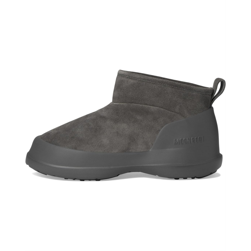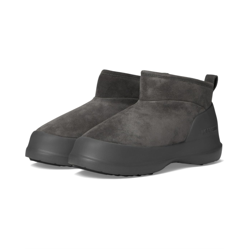 - Walk into sleek, space-age style wearing the MOON BOOT Luna Low Boot Suede! Inspired by lunar adventures yet perfect for city streets, this water-repellent, gender-neutral design combines luxury with practicality. Crafted from supple cow suede and lined with cozy faux fur, the Luna Low Boot ensures all-day comfort. Its ambidextrous, slip-on style, paired with a pull tab and logo-embossed heel counter, makes it easy to wear. The EVA midsole and thermoplastic rubber tread sole with suction pads offer exceptional grip and stability, ensuring superior ground control. Designed for urban explorers, this modern boot blends contemporary aesthetics with high-performance features-ready to elevate your every step!