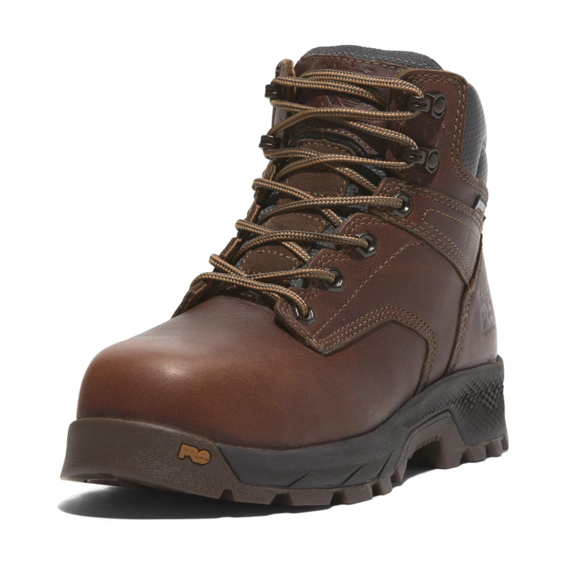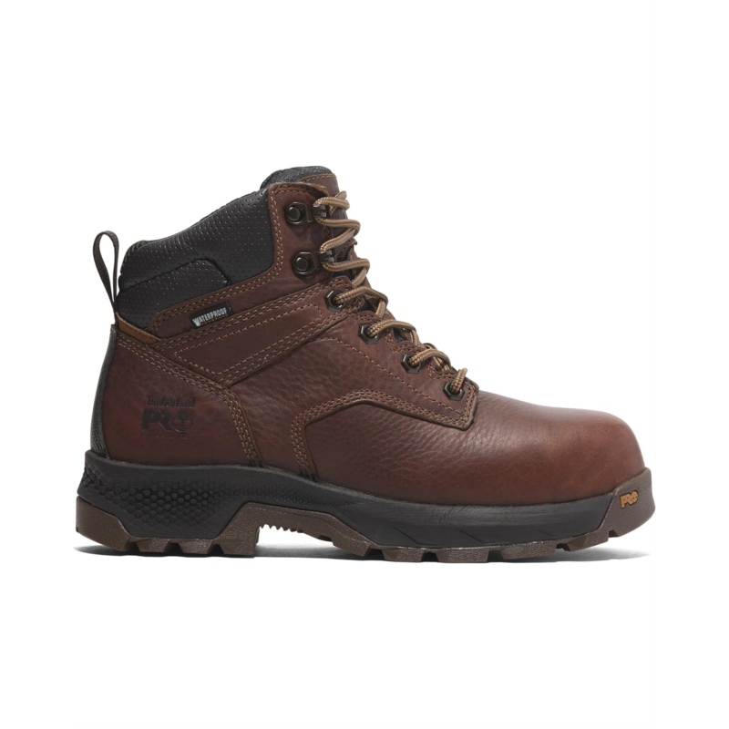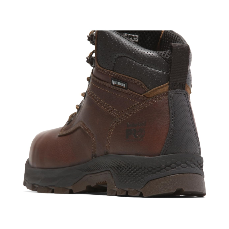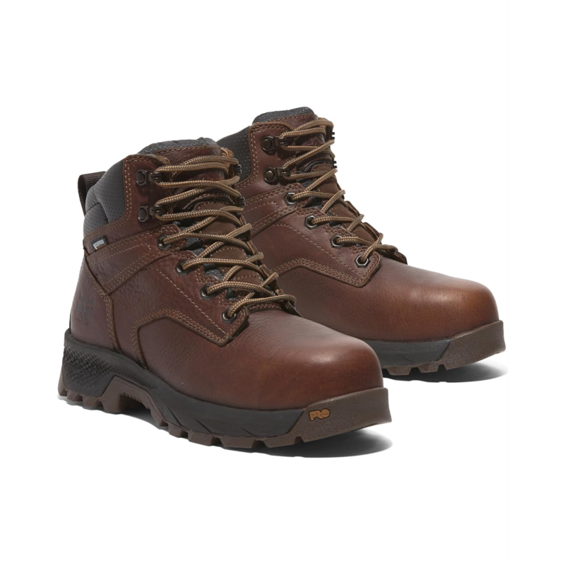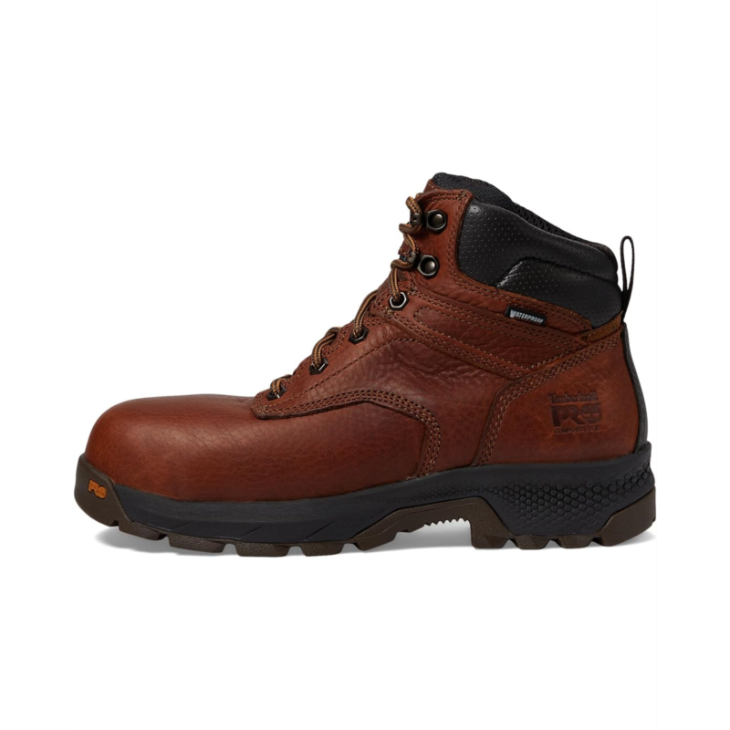- Gear up for the ultimate in comfort and protection donning Timberland PRO TiTAN EV Work Boots! Engineered for all-day performance, these boots feature a leather upper and fabric lining that combine durability with breathability. The PU insole and HoverSpring foam deliver unmatched comfort and flexibility, while the composite safety toe ensures lightweight, non-metallic protection that meets stringent safety standards. With a waterproof membrane and insulation, your feet stay dry and warm in any condition. The Timberland PRO rubber outsole offers superior slip, oil, and abrasion resistance.