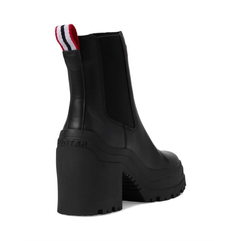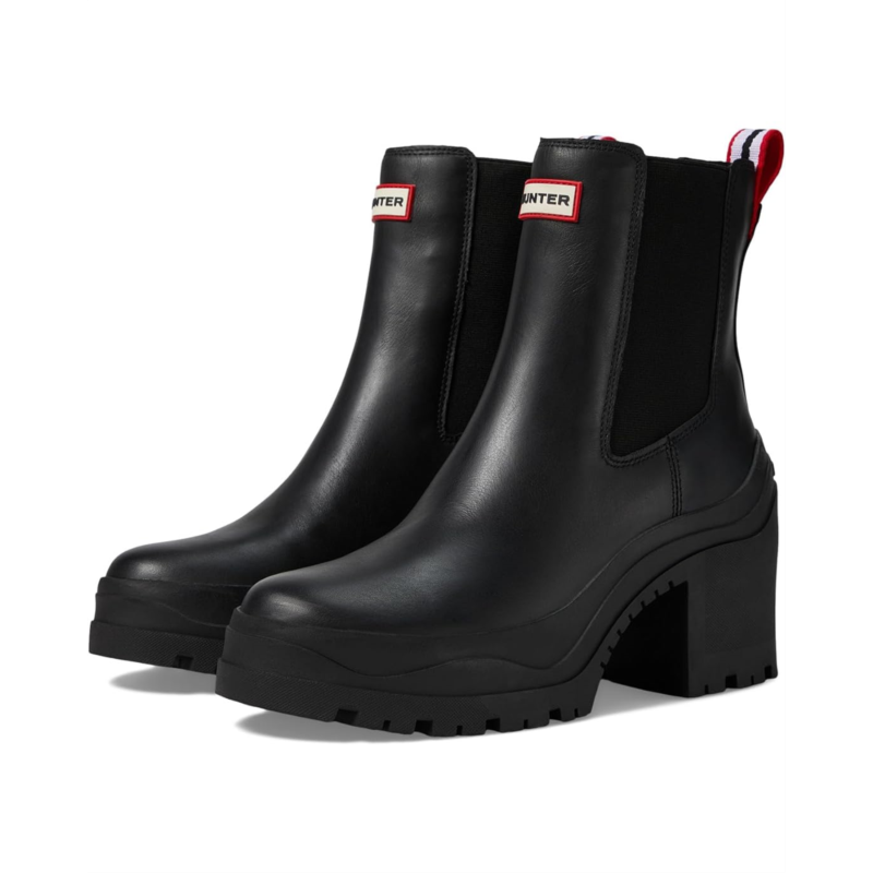 - Keep yourself comfortable and dry wearing the Hunter Miana Boots. The almond toe boots are crafted in a waterproof construction, with a rubber upper with elastic gore sides for easy pull-on, polyester lining, and a polyester insole. The solid block heel elevates the style and the ankle pull tab allows easy donning & doffing. The brand logo detail on the front adds authenticity to the look.