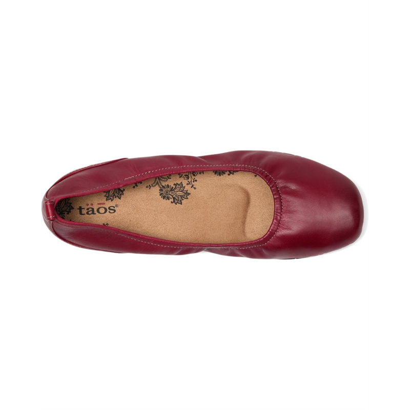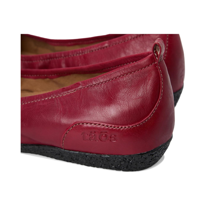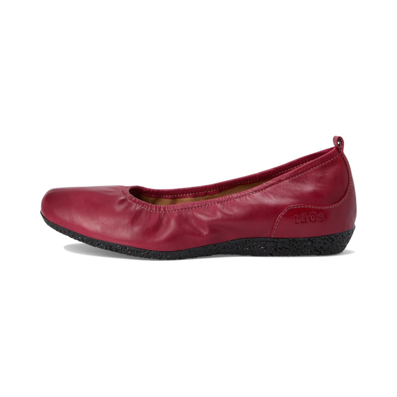 - Add a shimmering charm to your steps by wearing the Taos Footwear Chit Chat. It features a full-grain leather upper, microfiber lining, and removable Curves & Pods polyurethane insole covered with microfiber. The arch and metatarsal support keep feet comfortable while covering the long miles. Perfect for both day and night, the flats feature a pull-on style, closed square toe, and gently elasticized topline. The tread on the outsole at the forefoot and heel helps traction and the rubber outsole provides durability and flexibility in each step