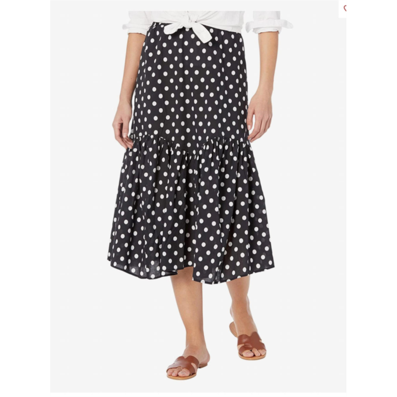 Tiered midi black white polka dot skirt. Elastic waistband.