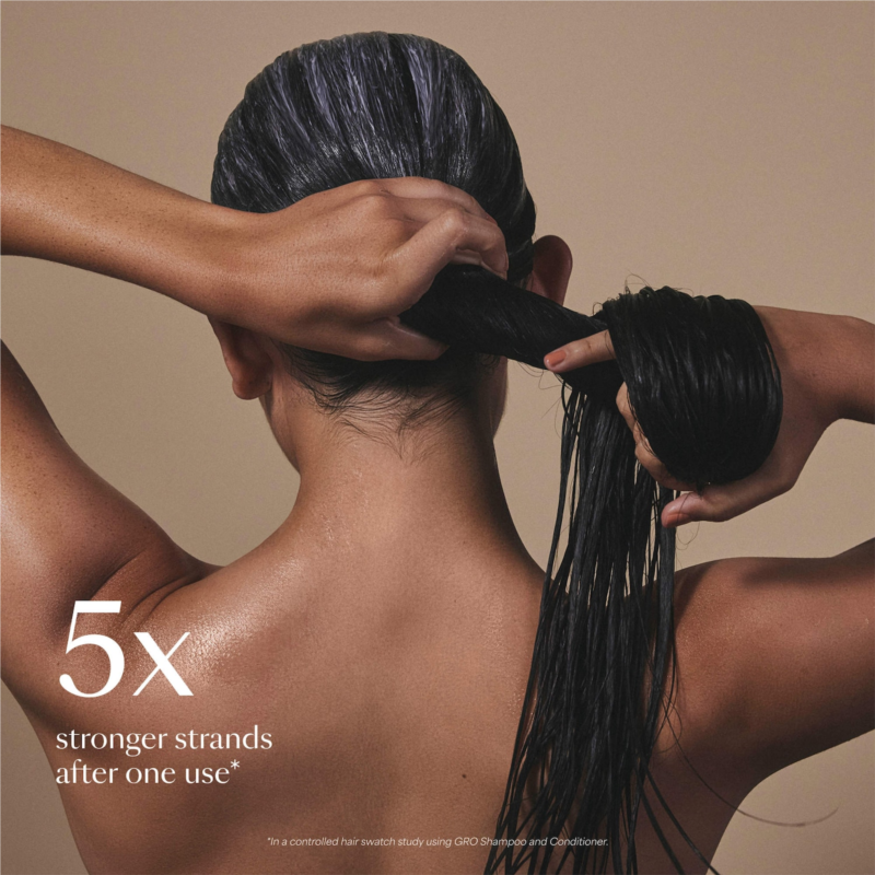 Clinical Results: In a controlled hair swatch study using GRO Revitalizing Shampoo and Conditioner: