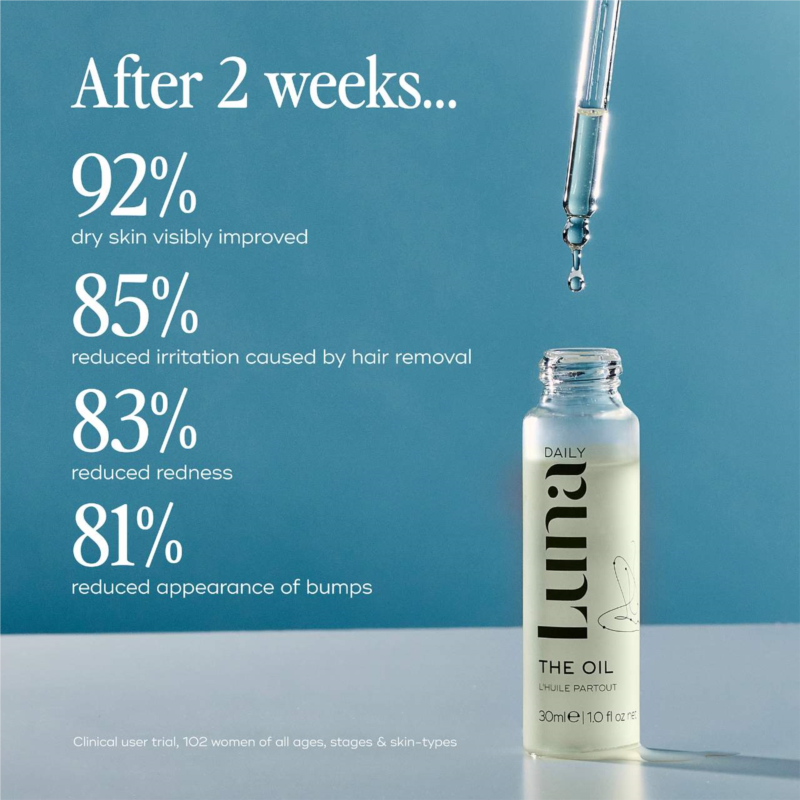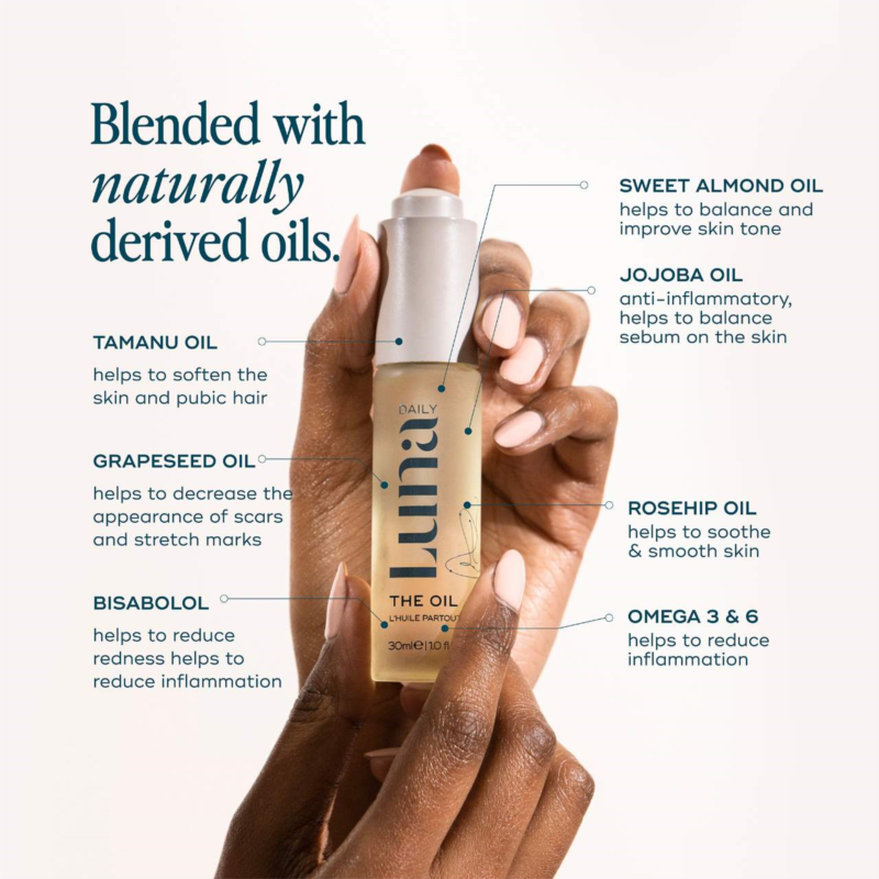 What it is:?A lightweight body oil clinically proven to target ingrown hairs, redness and bumps, with a blend of 8 natural oils including rosehip oil, bisabolol and jojoba oil and vitamins C, E and F to soothe and deeply hydrate skin. ?Formulated to be used anywhere, including intimate skin.