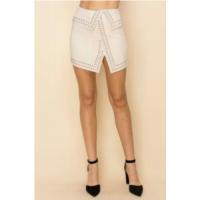 VOCAL APPAREL waist embellished suede mini skirt in natural