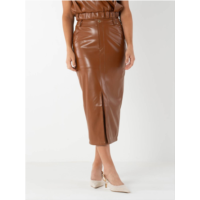 TOCCIN stacy lace vegan leather skirt in brown mutli